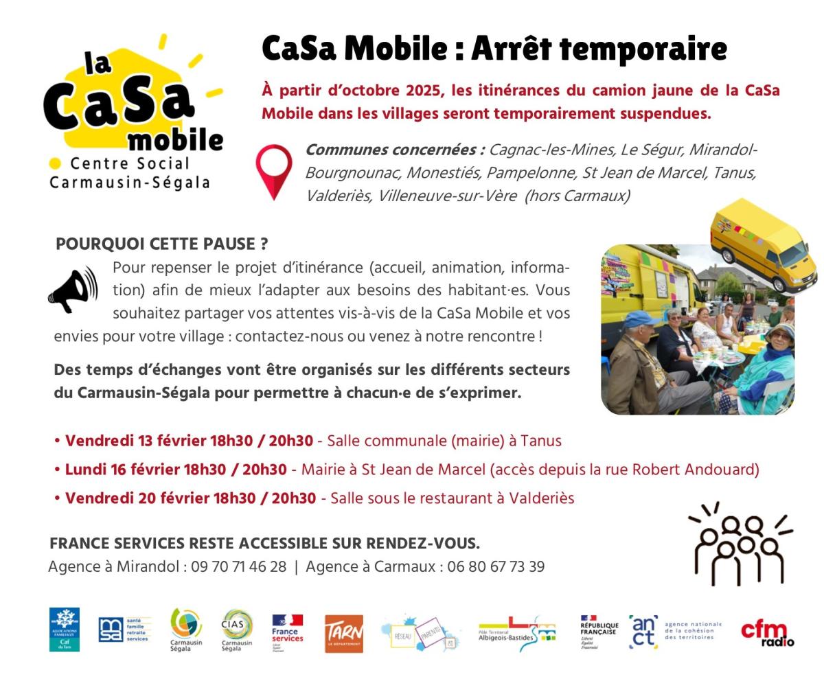 Depuis plusieurs années, la CaSa Mobile sillonne les villages du Carmausin-Ségala, à bord de son camion jaune. Objectif : aller à la rencontre des habitant·es pour proposer des temps conviviaux, d’animation et d’information.